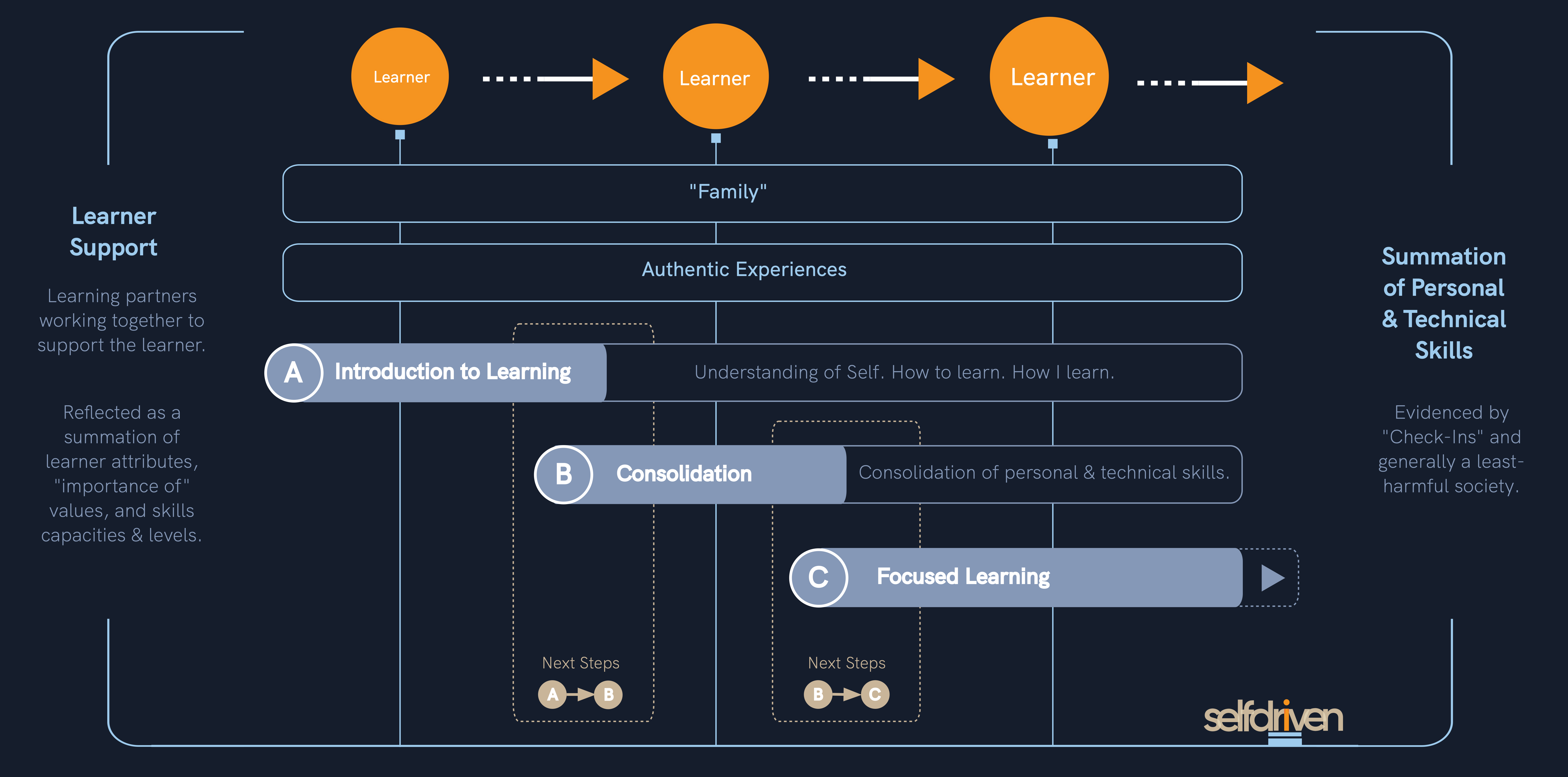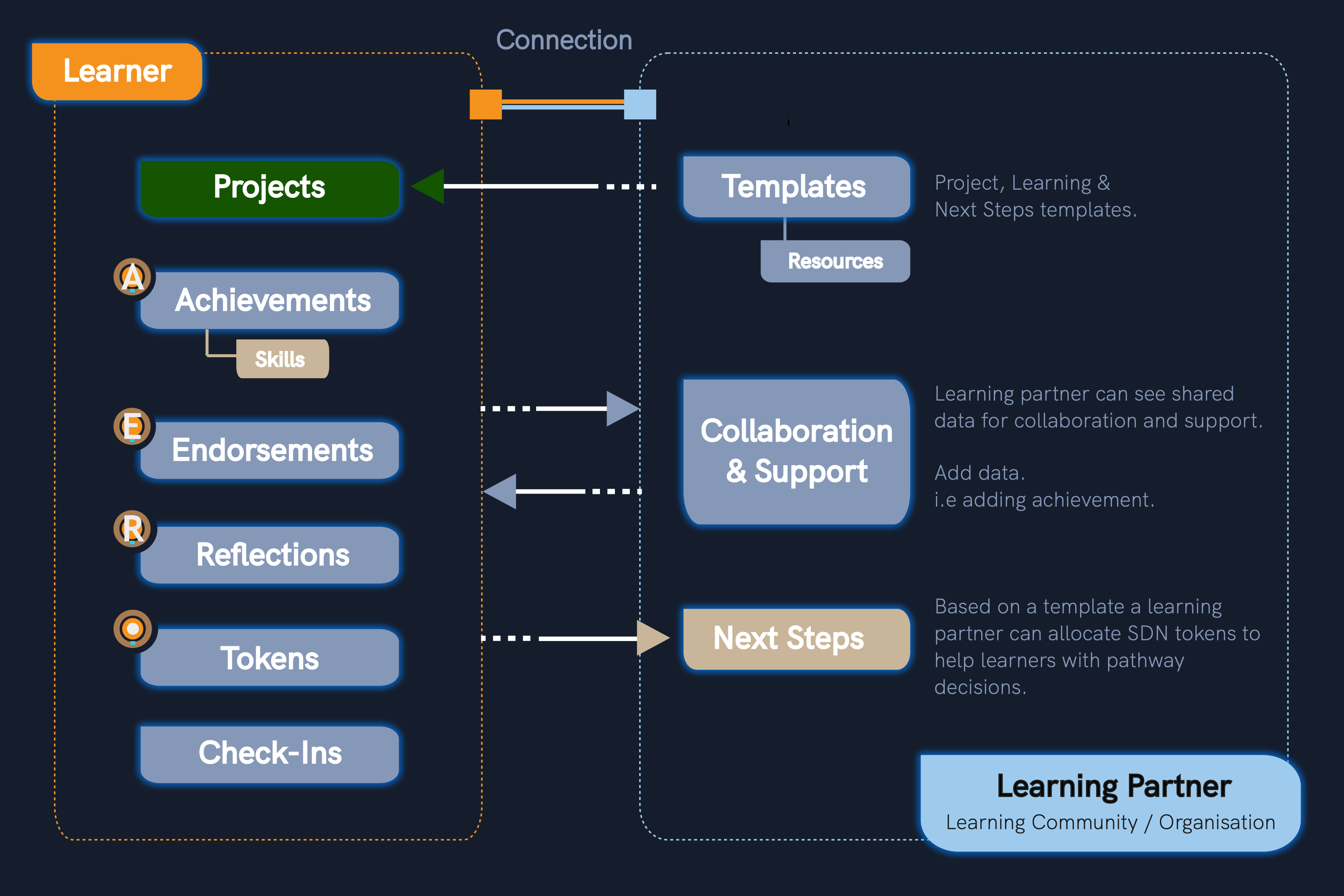 Enabling learning partners in different learning communities to collaborate and share resources with the learner; and help learners with learning pathway decisions, using the selfdriven Apps.