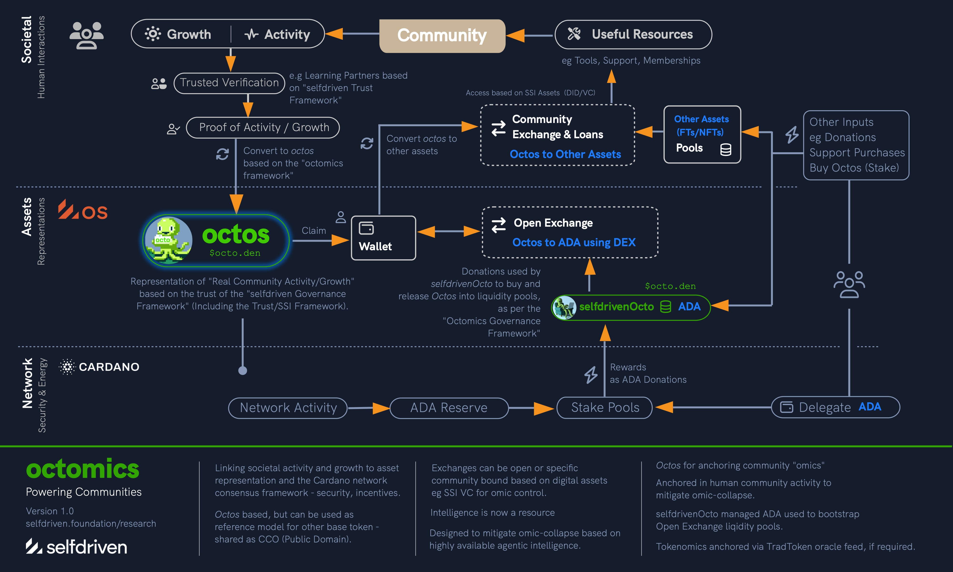 Octos can be exchanged using Community Exchanges (permissed by SSI DIDs/VCs) for useful resources.