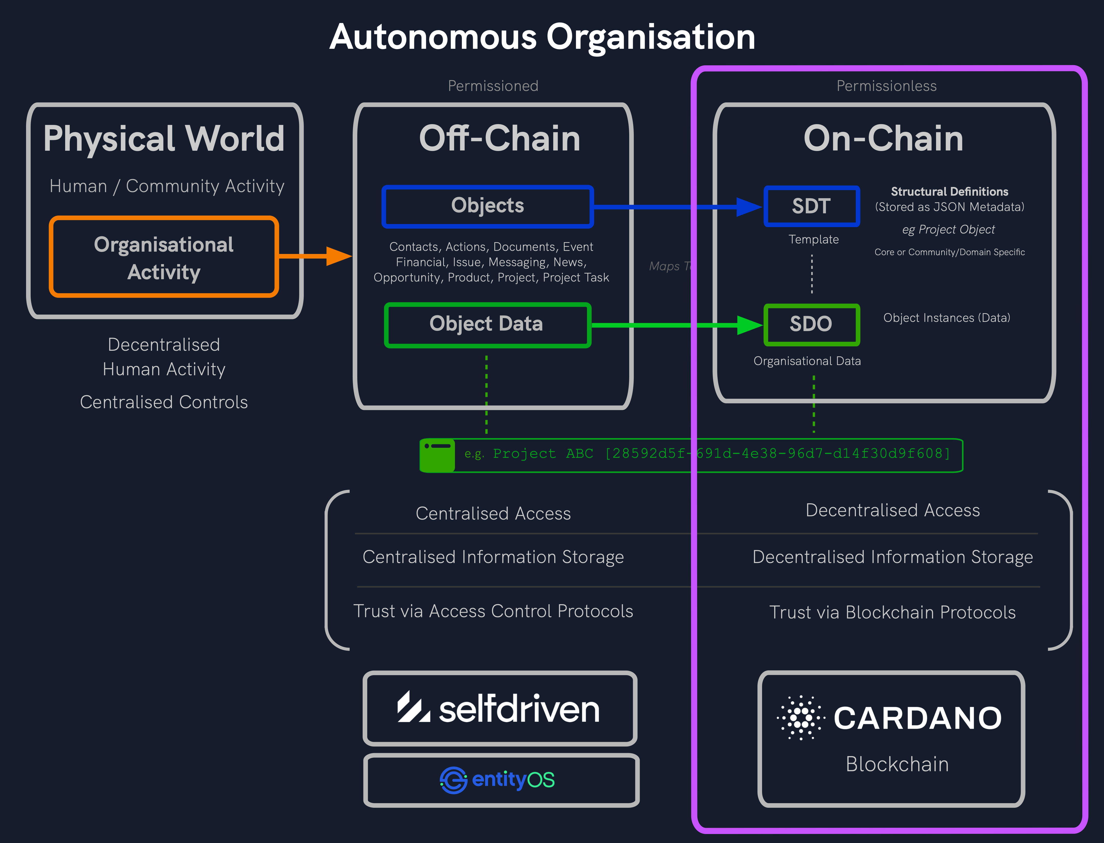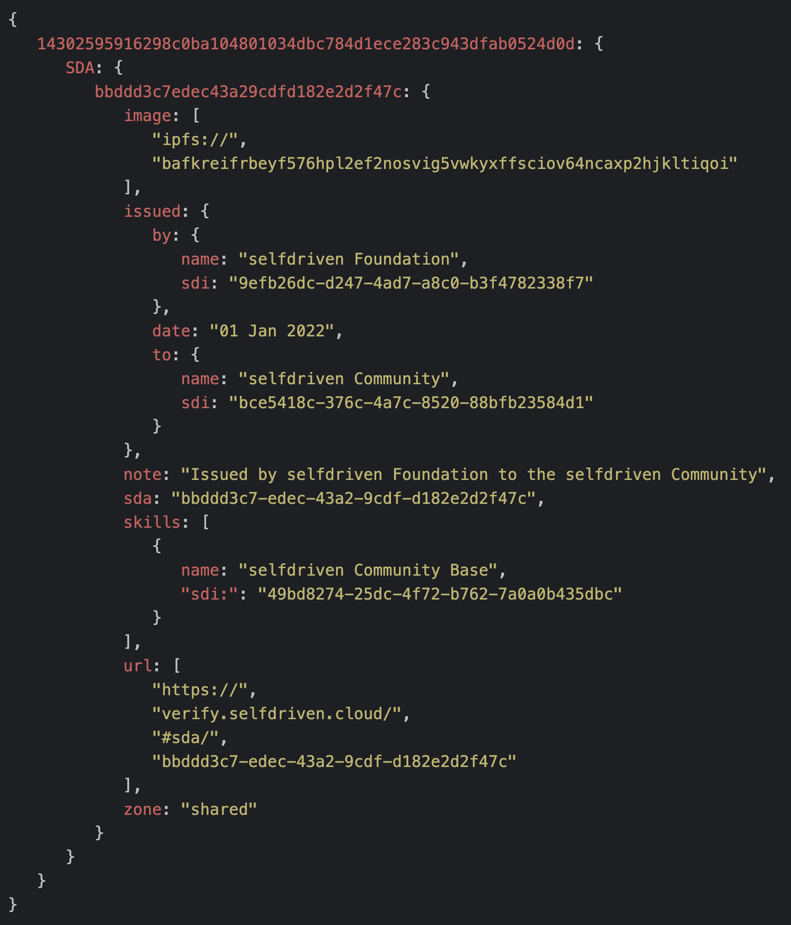 Example node.js code to access the selfdriven on-chain data stored on Cardano.